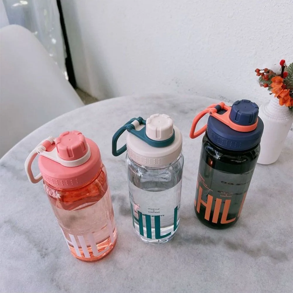 0.6L/0.8L/1L Large Capacity Water Bottles Plastic Leak Proof Travel Kettle with Handle Strap Lightweight Sports Shaker Cup